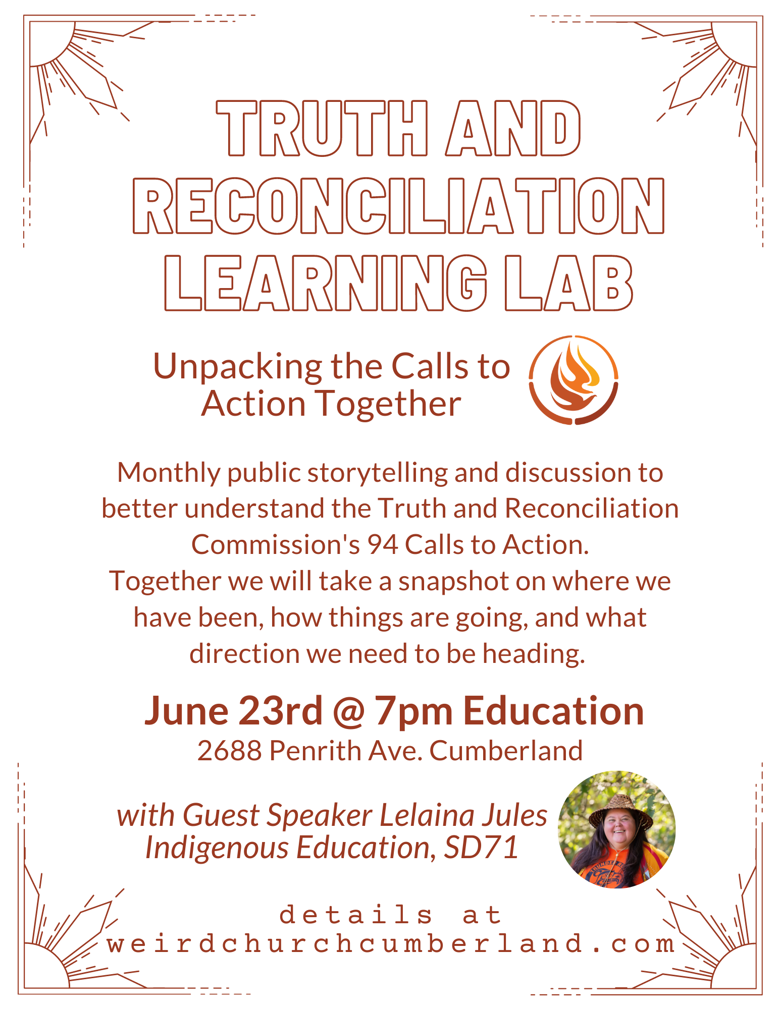 Each month the Weird Church Truth & Reconciliation Team will be hosting a community wide conversation on the Truth and Reconciliation Commission 94 Calls to Action where experts in their subject will be coming to educate, communicate, and host discussion.