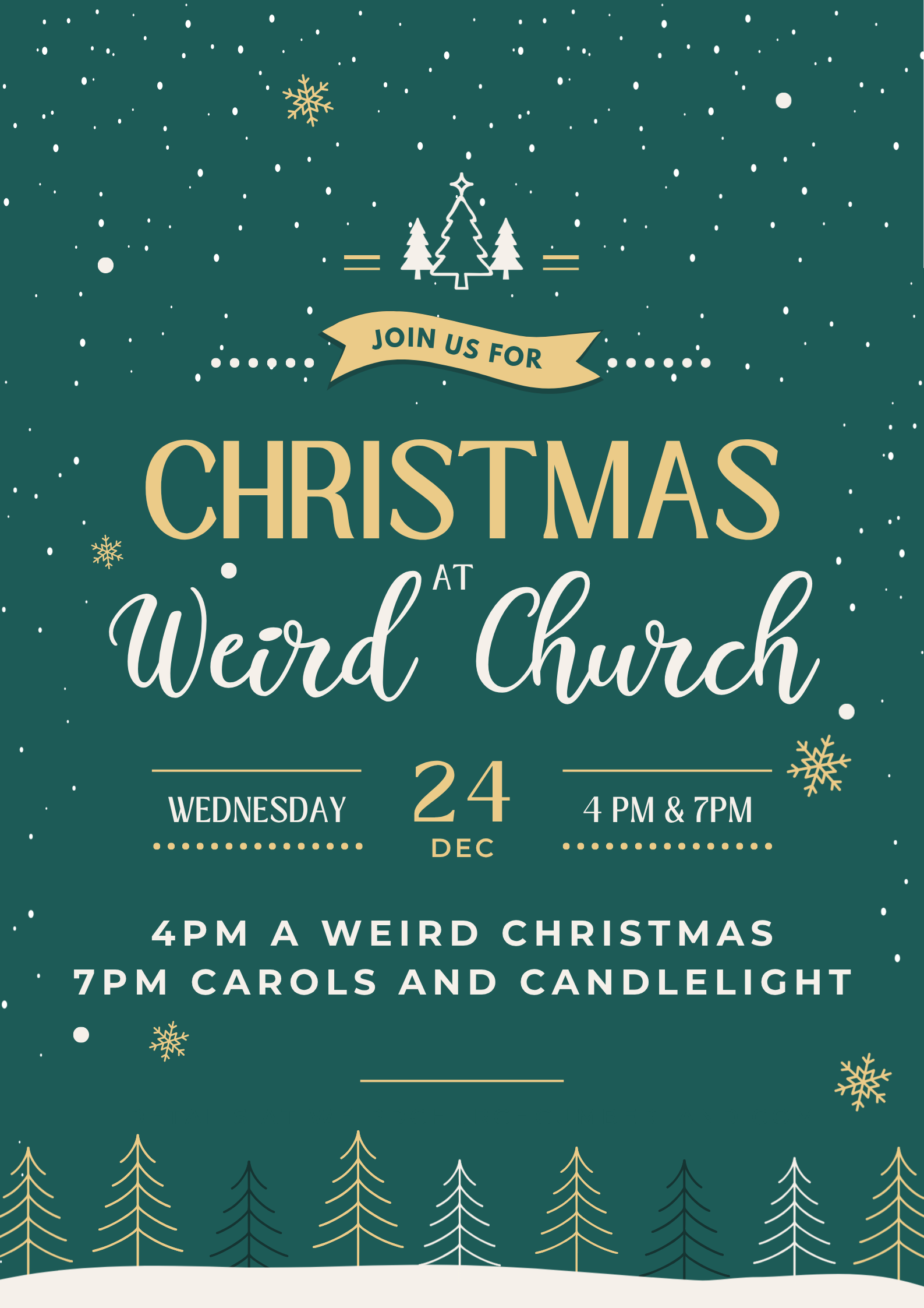 This service is playful and fun, a way for folks of all ages and stages to engage. If you are looking for something a little less lively, please join us at 7pm for our Carols & Candlelight Service.