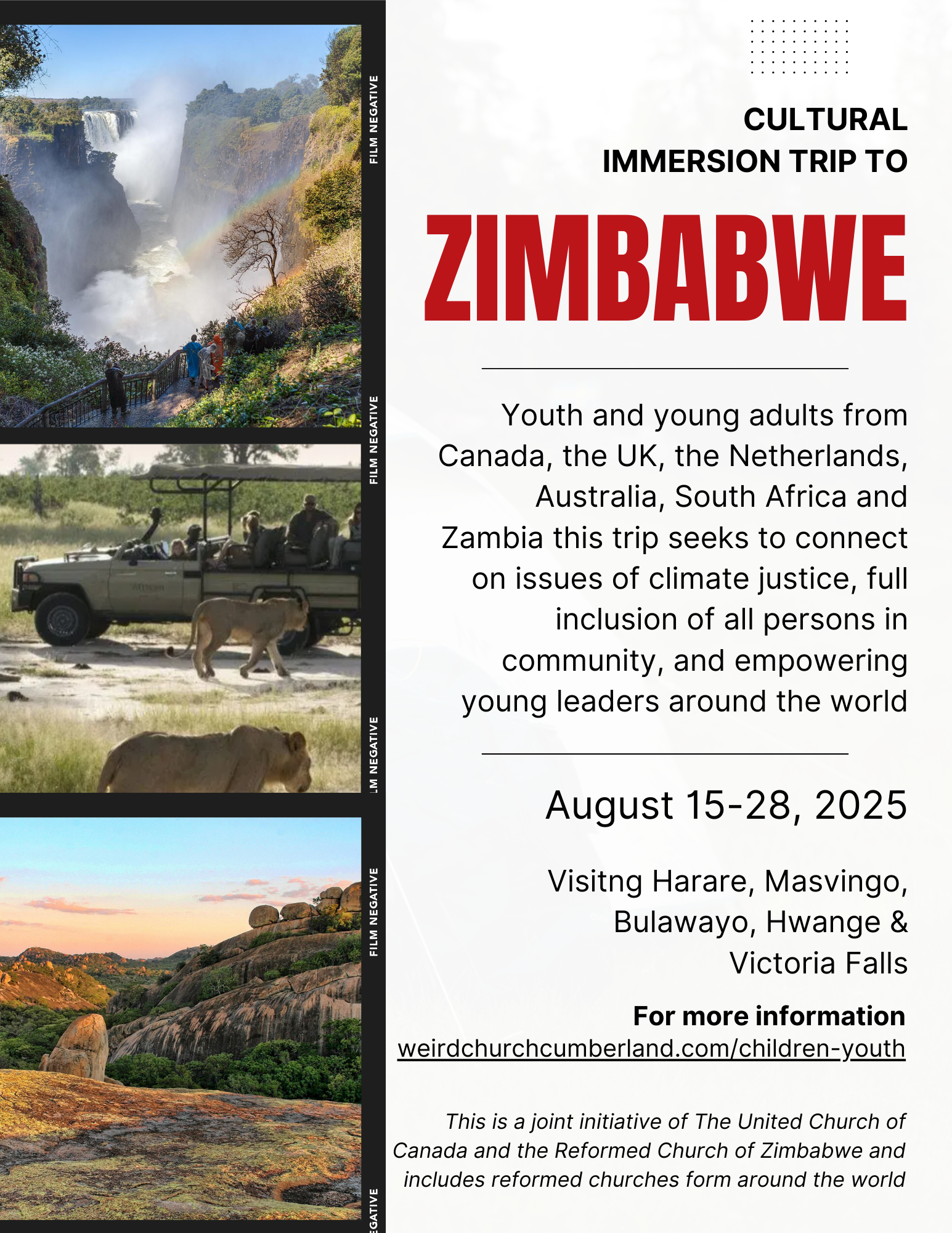 As part of our commitment to fostering youth development, we are joining with other churches who are dedicated to empowering youth and fostering cross-cultural understanding. We are working with youth and leaders from Zimbabwe, South Africa, Zambia, Australia, UK, Canada and the Netherlands and will be hosted by the Reformed Church in Zimbabwe.